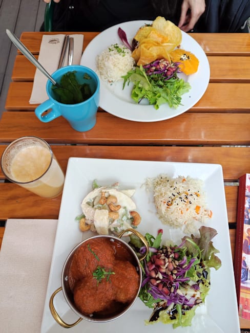 7/10I've been coming to this restaurant for the past seven years now. Unfortunately, it's one of those that have fallen into the tourist trap. Increasing prices and the food is getting a bit mediocre. The pasta dishes didn't have any protein in them, either. Which is a shame, because you don't have to deprive yourself of protein if you're a vegetarian. It's not a bad vegetarian restaurant, but it's not what it used to be. The tables outside make up for it, though.
