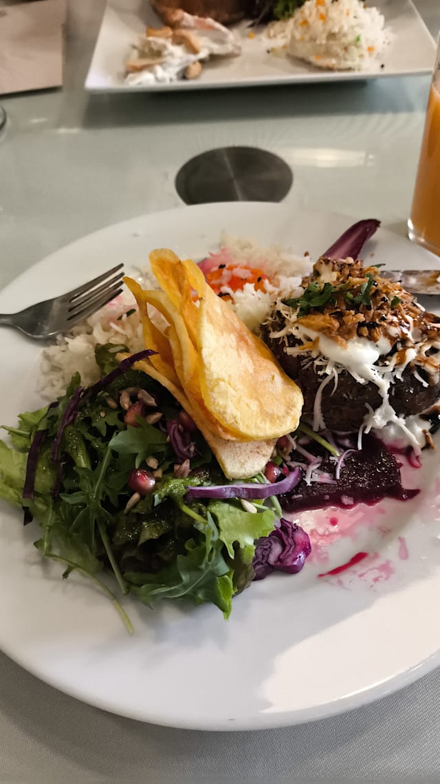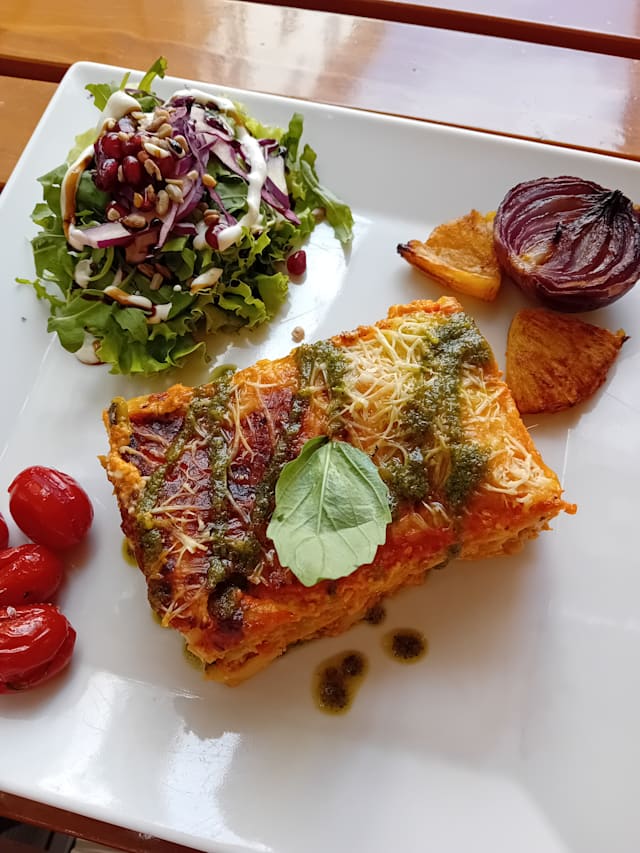 10/10Excellent vegan restaurant with friendly service. Decking on the pedestrian steps / walkway provides a great outside location to watch the world go by, and with plenty of shade and a gently cooling breeze. Inside is pleasant enough as well although the A/C was struggling to cope on the hottest day (nearly 40oC). Food quality really good and reasonably priced.