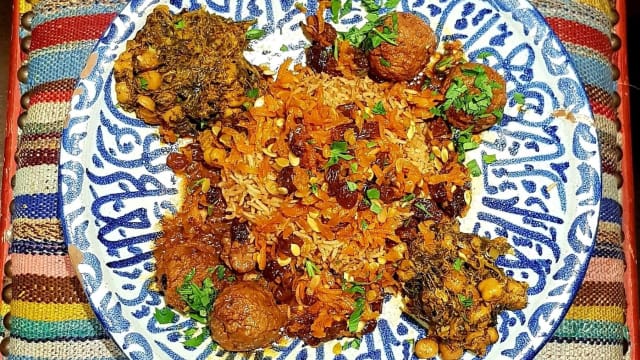 (riso con pollo) + kofta (polpette di manzo) + lenticchie gialle