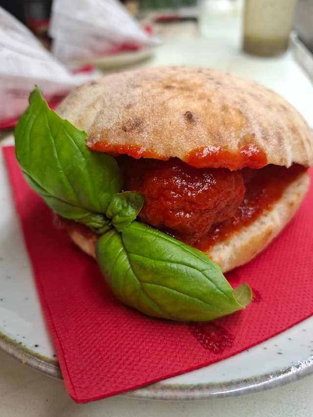 - Puccia con polpette al sugo e parmigiano