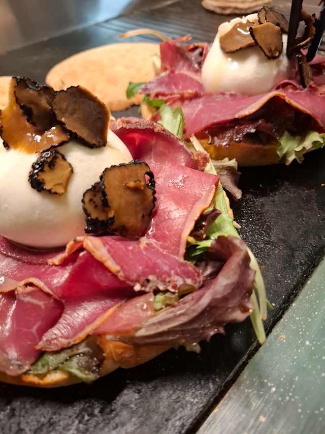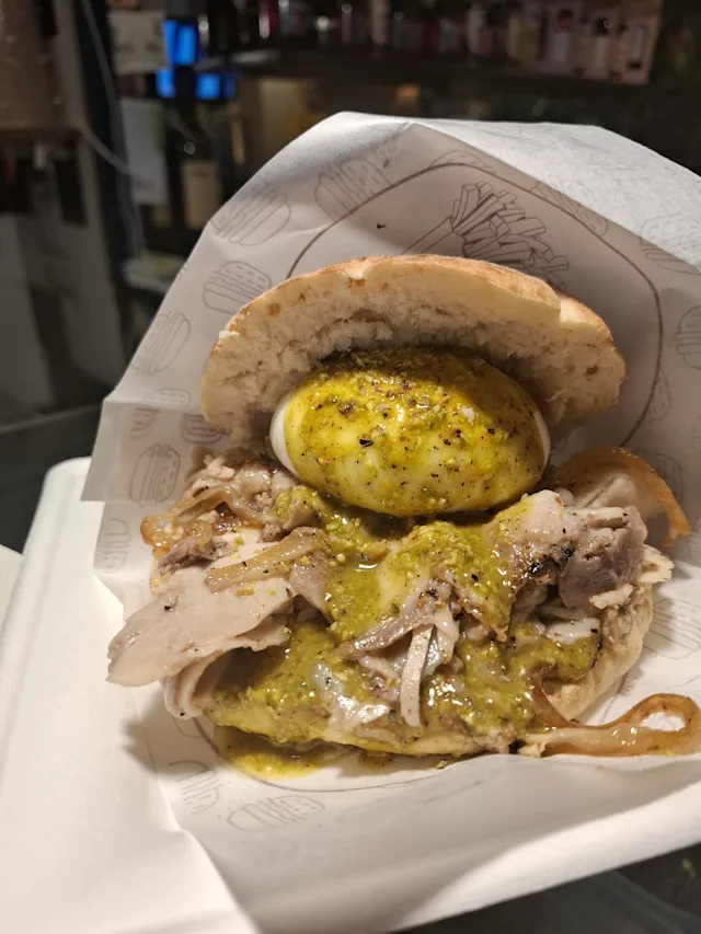 - Puccia con porchetta, burrata e pistacchio