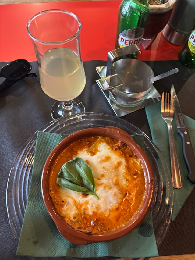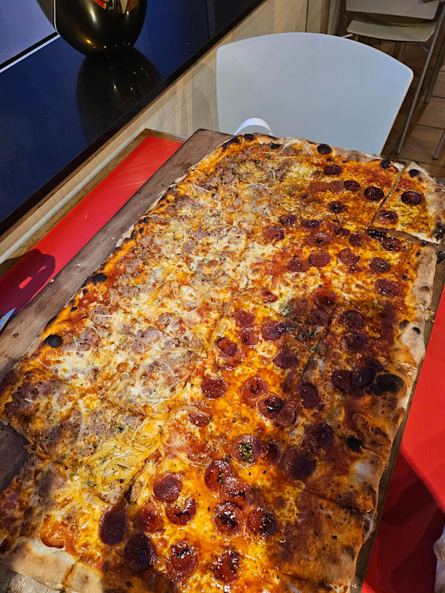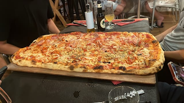 9.5/10+2The star dish pizza. Of the best and besides, a very very generous ration. Homemade dough that overflows around. Very correct attention always attentive to be well attended. The girls were treated excellent! Highly recommend going with little ones... as pasta and pizza is great for them. There is no gluten free pizza, but there is pasta.. with rice flour