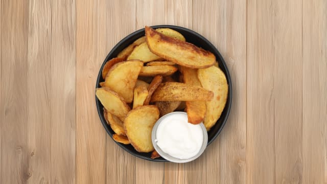 Falafels, salad, tomato, potatoes, mint, parsley, vinaigrette. Served with 2 items (sides or drinks of your choice).