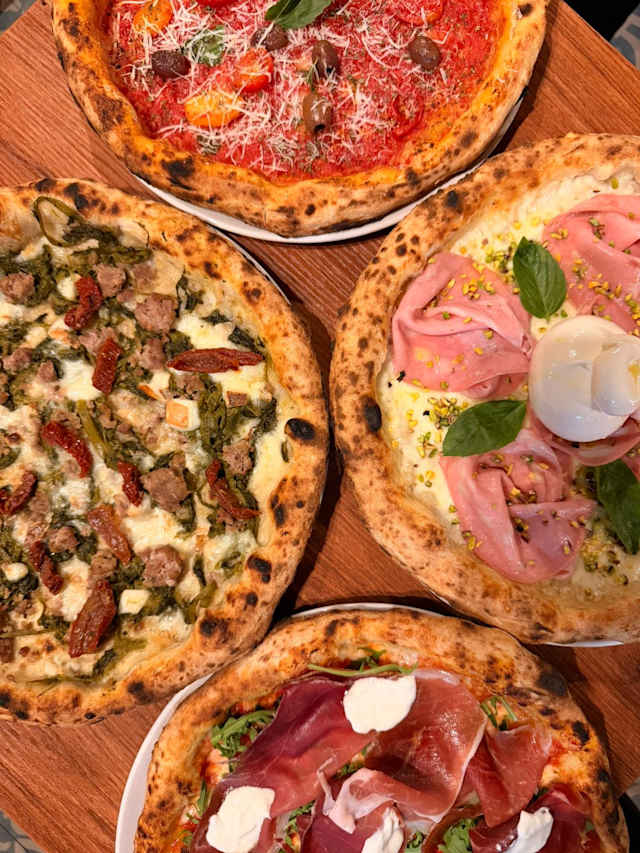 Pomodoro, fior di latte di agerola, melanzane, nduja, ricotta di bufala DOP, basilico, olio evo