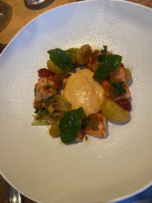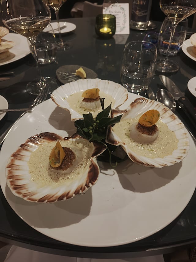 8.5/10The food was ok, but fell short of my other Michelin rated stops. The scallops were amazing, but the sea bream was inedible IMO. The mashed potatoes were terrible. Very smooth and creamy, but bitter in taste. May I suggest only butter, cream and salt. What else do you need??? The palate cleanser gratine was very bitter as well. The fig dessert was good, but somewhat lackluster as well. Service was nice but slow.