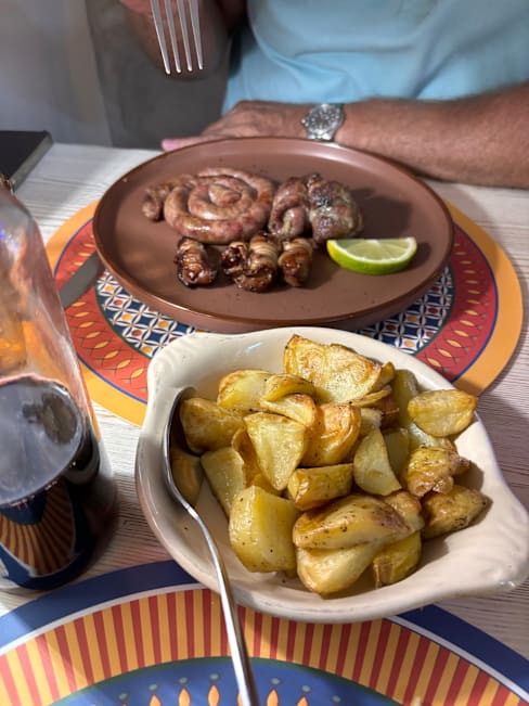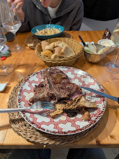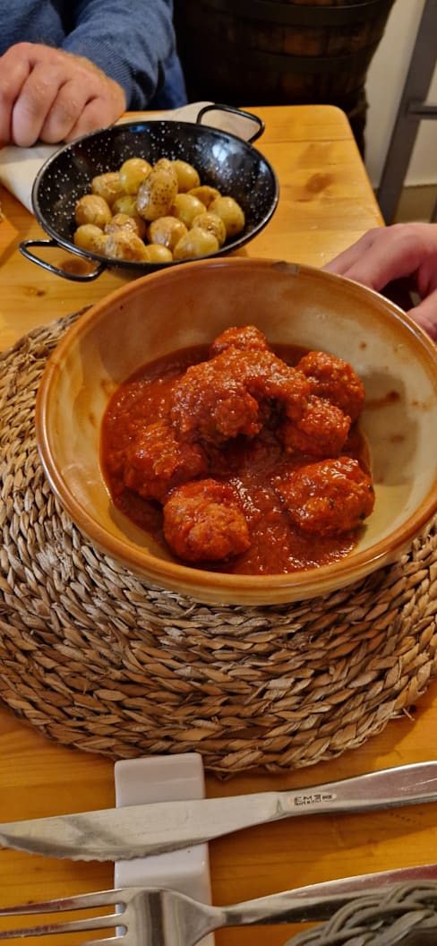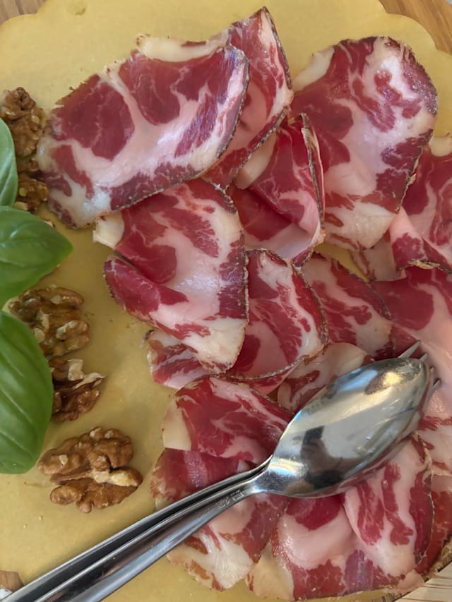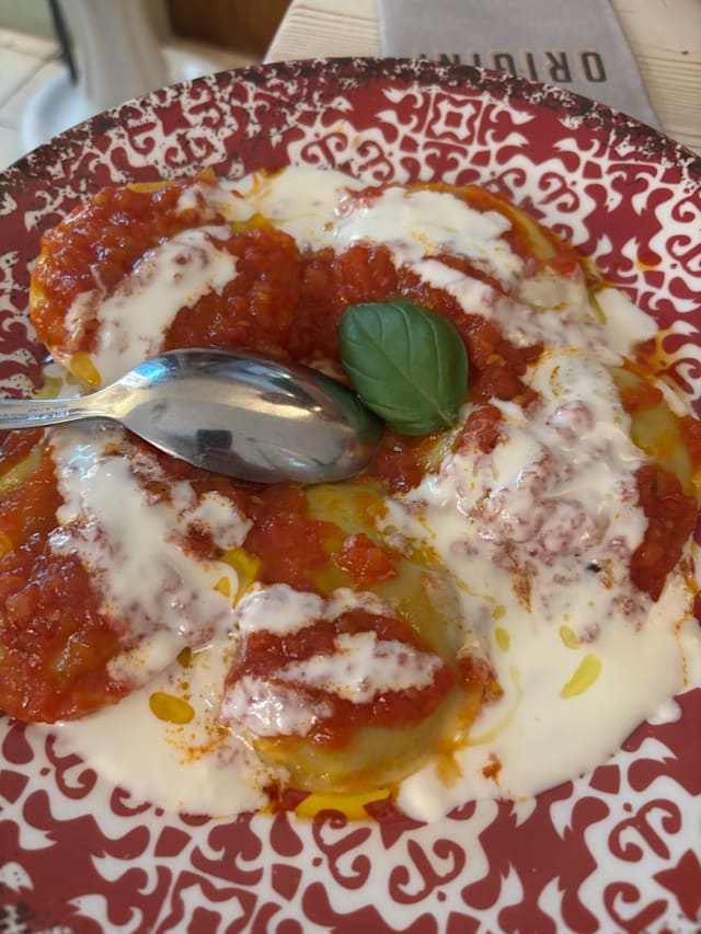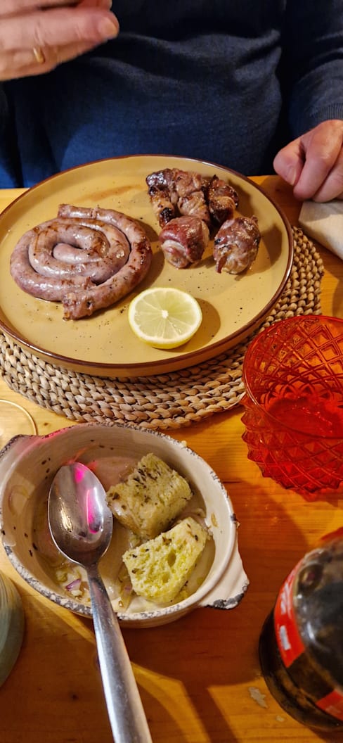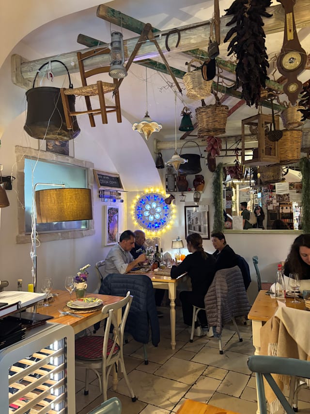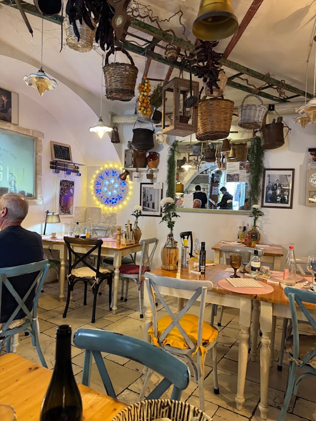 10/10This was our second visit to Origini. The first time last year for lunch, sitting outside and enjoying wonderful pasta. This time, it was dinner inside. The room is fairly small (about 20 diners), cozy and eclectic with all manner of bric a brac suspended from the ceiling and mismatched furniture throughout. This time we were here for meat - and they did not disappoint. Three of us shared a plate of capicollo tagliere to start and then mixed grill + polpette and braciola + guanciale. All were fantastic with special callout to the guanciale which was incredibly rich and flavorful. This is a dish for sharing because it is too rich for just one person to eat a whole plate of. A great bottle of wine, two deserts to share and coffee for all and the bill came out to €105 - what an incredible meal for just €35 per person! We will be back again!