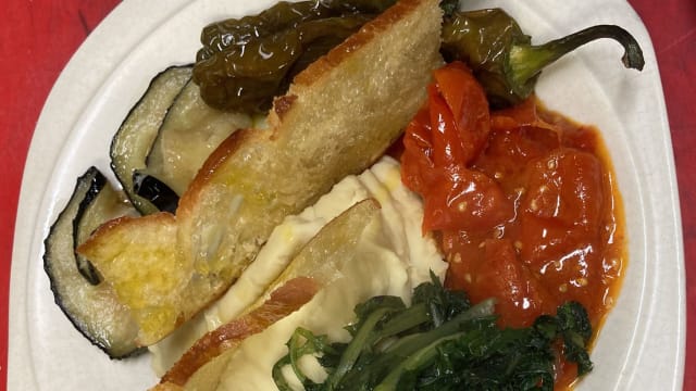 Tagliere di salumi e formaggi polpette frittatina e burratina su crema di pomodoro e basilico