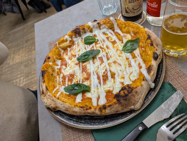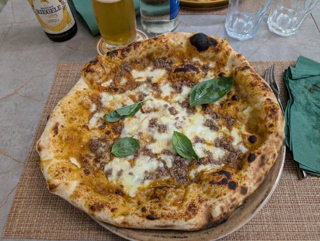 Cipolla di montoro, carne bovina, fior di latte di agerola, fonduta di pecorino homemade