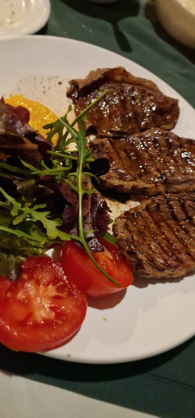- Bifinhos com molho de vinho da madeira, acompanha arroz branco e chips de mandioca
