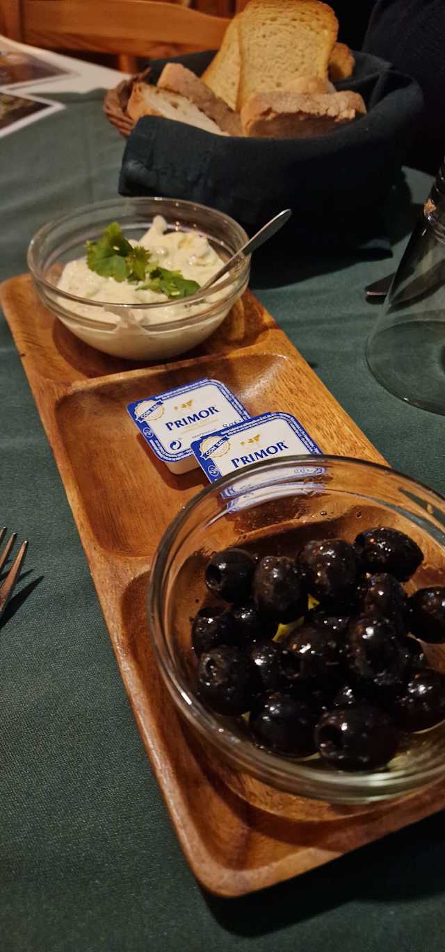 - Bacalhau desftado, batata palha, cebola, ovo, azeitonas e salsa