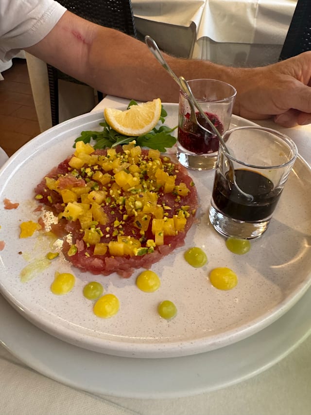 10/10We had lunch here before taking the ferry to Giglio and really enjoyed it. The seafood dishes were excellent according to my wife and her mom, while I appreciated the vegetarian options available for me and our son. The setting on the terrace by the sea was ideal, especially on such a hot July day. Getting there by car was a bit tricky: navigation actually told us to drive through Via del Molo, but we saw a no-entry sign and chose to go up the hill instead. Luckily, we found parking and walked down a nearby staircase. Only later did the owner explain that the sign doesn’t apply at lunchtime and that they offer free parking for guests. Overall, a lovely experience and we’d be happy to return.