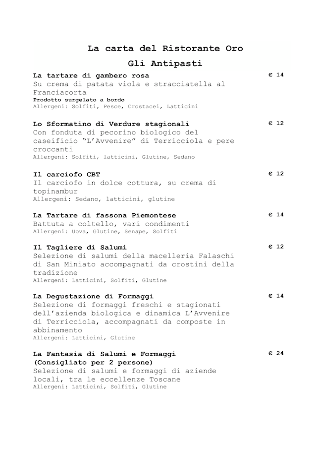 9.5/10This is one of those must-go restaurants in the Terricciola commune in Tuscany. This dinner was the peak of our trip as far as food goes. The owner/manager was incredibly hospitable and gracious as he welcomed us to his place and told us of some background to the area. Everything on the menu we tried was spectacular. We started with a cheese plate, marmalade, and bread, which was great. The sirloin was perfectly cooked and tender, the potato ravioli (cappellaccio) was outstanding, the risotto was nice, and the salmon was delicious. Paired with a local wine, it was a perfect dinner. Capped with a variety of dolces (to include nutella cheesecake and limoncello) We did not do the tastings menu (other reviewers raved about these). The service was great and timely (as Americans, we preferred our food to come out all at the same time). All for $44 USD per person....what a great value!