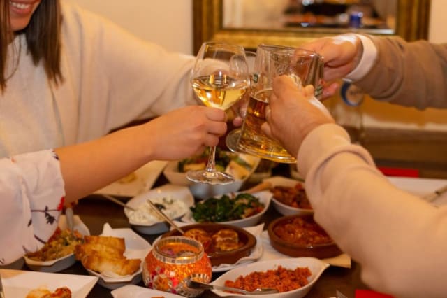 - Walnoten, rodepeperpuree, olijfolie, sesampasta en granaatappelsaus (salades en voorgerechten worden geserveerd met Turks brood)