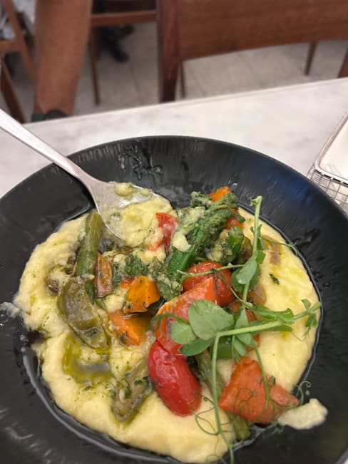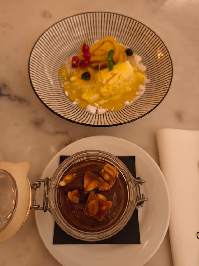 10/10+1The restaurant is beautiful! The building is very old - which adds to the ambiance. The restaurant owner went through all of the options and suggested that we (2 of us) choose 3 to share. The portions are a shareable size. We chose a cod dish, the hanger steak dish and a vegetable dish. They were all delicious! We had the chocolate mousse (delicious!) and a passion fruit merengue dessert. We left nothing on any plate. Highly recommend! Make a reservation!