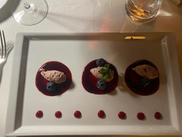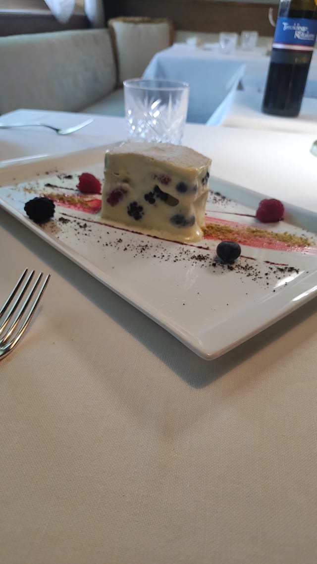 Paté di capriolo e foie Gras su crema di mirtillo nero trentino con pan brioche e piccoli frutti di Sant’Orsola