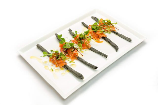 Salmone marinato al Trento D:O:C: al profumo di erba cipollina con burro lavorato e crostini croccanti