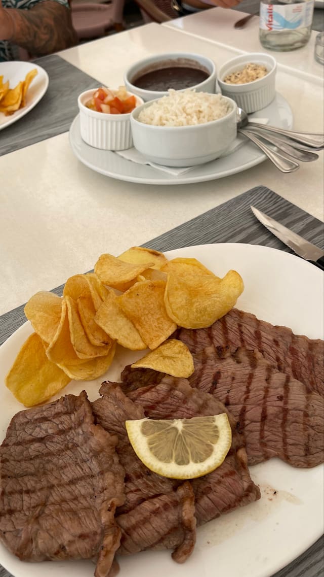 5/10This was our second time back at Os Prazeres da Carne. I returned with high hopes as the view and ambience is great. Unfortunately the exact same scenario repeated itself as on the first visit. I ordered my steak medium, and explained to the server that I do not want there to be blood on the plate. When the steak arrived and I cut it open, blood poured onto my plate. It simply indicates that the steak was not rested after taking it off the grill. We called the server and explained it politely and carefully: he responded rudely with ‘I don’t know what you want’. To be clear: there was no language barrier as my partner also explained this in Portugese. He removed my plate and returned it with a completely overcooked steak that tasted like shoe-sole. I attach a picture for reference. The exact same scenario happened on our previous visit. It is regrettable that a restaurant that prides themselves on meat is not able to prepare it properly. We will not return.