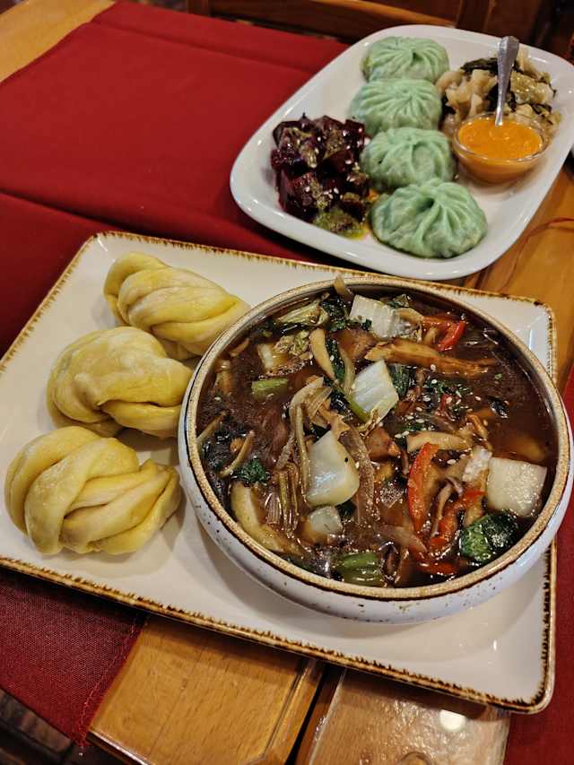 10/10Genuinely, a fantastic meal; I confess we didn't realise it was a vegetarian restaurant when we made the booking, but we had no regrets about that - the menu is excellent, plenty for anyone to enjoy. I particularly recommend the momos with spinach and cheese, though :-). (The rose icecream & yoghurt for dessert is amazing, as well.) I'm not quite ready to give up meat, but if anywhere was going to convince me I could this place would.