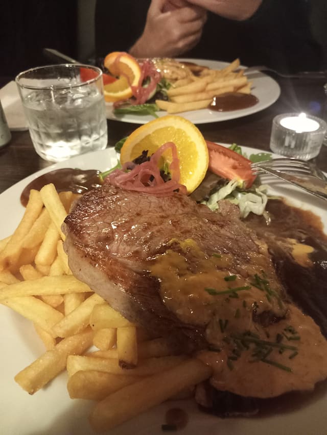 10/10The service was very nice. We ordered cheese burger and rib eye steak. The steak was very tender and with home made sauce was very delicious and also cheese burger was classic and nice. We did enjoy the meal a lot.