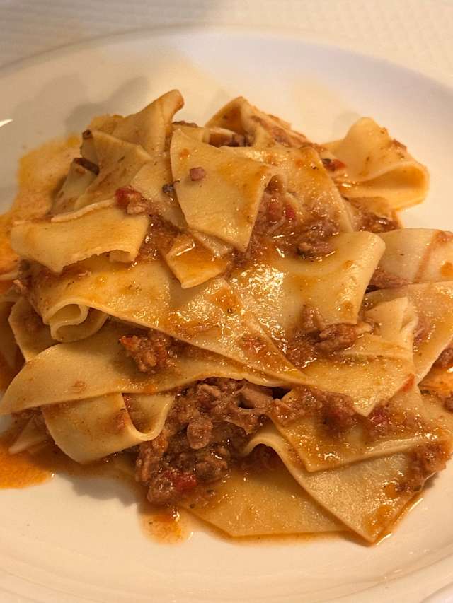 Tortelli di spalla cotto conditi con scalogno, pancetta affumicata e carote
