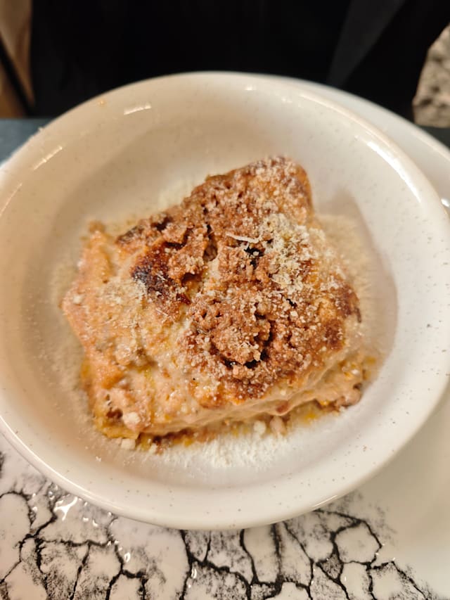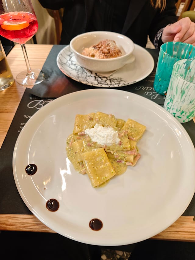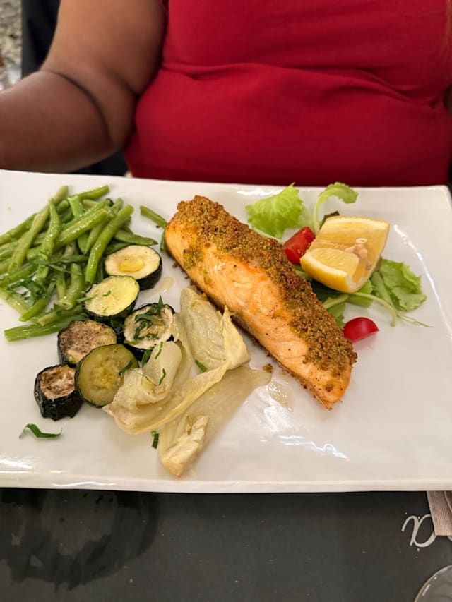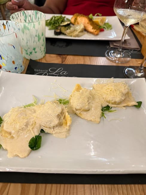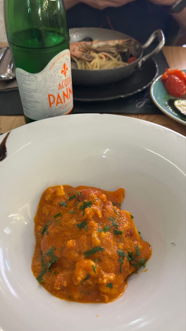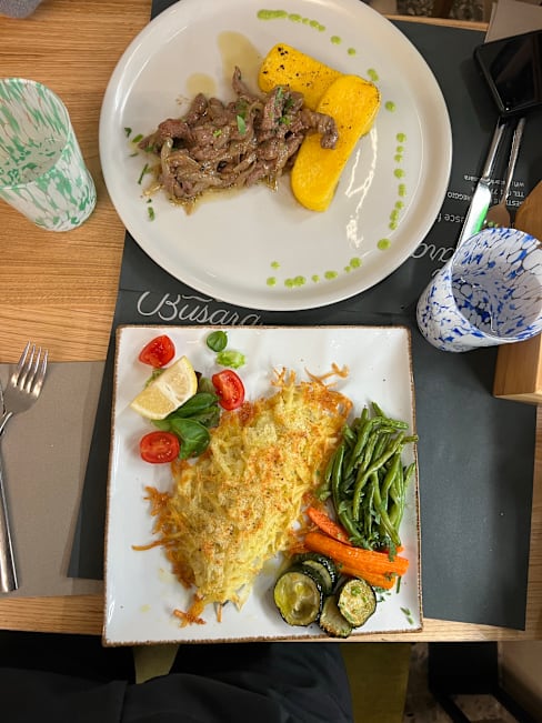 9.5/10I had the salmon with pistachios secondi de pesche it was excellent. They were quite busy, forgot our water and wine, and were so sorry when reminded. They served us a digestive of a liquor we had never had. We will return here again tomorrow night.