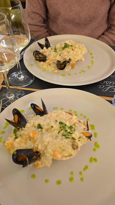 9.5/10Wonderful seafood risotto. Cooked perfectly with a great creaminess. Tasted like the sea with a generous amount of various seafood throughout. The Bronzino was also to die for. Juicy and delicious. Wash it down with a bottle of Lugana, as it pairs excellently with seafood! We would definitely come back!