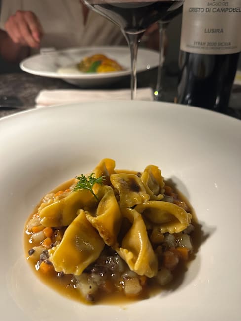 10/10A dream. Traveled from NYC and have been in Sicily and Calabria for 2 weeks. The food has obviously been amazing everywhere but this place is an elevated and slightly more modern version of Sicilian fare. They have an amazing aged steak selection from around the world and walk you to the refrigerators to discuss your choices. The two pasta dishes we had were insane. We were rolling our eyeballs in ecstasy. It’s an all around brilliant experience and the service is as good as it gets, anywhere n the world. Couldn’t recommend Ostaria enough.