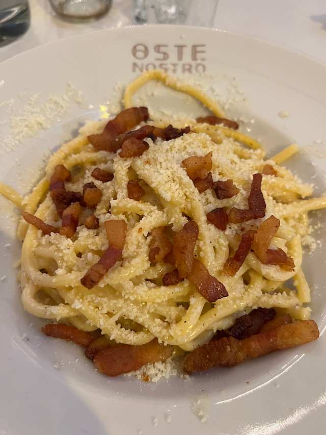 10/10Despite being in the heart of busy Trastavere, Oste Nostro is on a less-busy street, and it was the least touristy restaurant we encountered in the area. The food was very good, and the server was excellent. My vegetarian family had no problem finding good options to eat!
