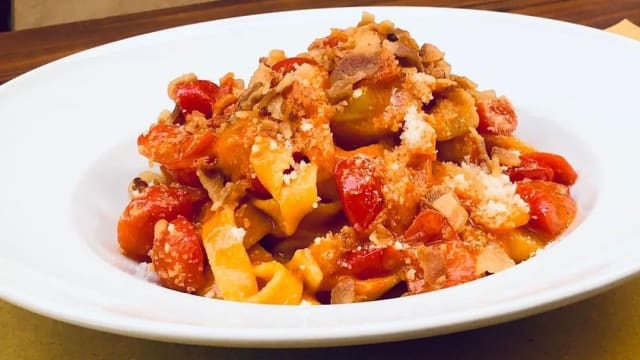 10/10Great atmosphere. Drinks at the bar to start then moved into the main restaurant for a delicious meal of carbonara and pizza.