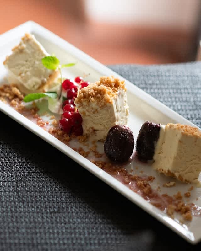 - Torta alle nocciole con topping allo zabaglione, gelato fior di latte e cremino