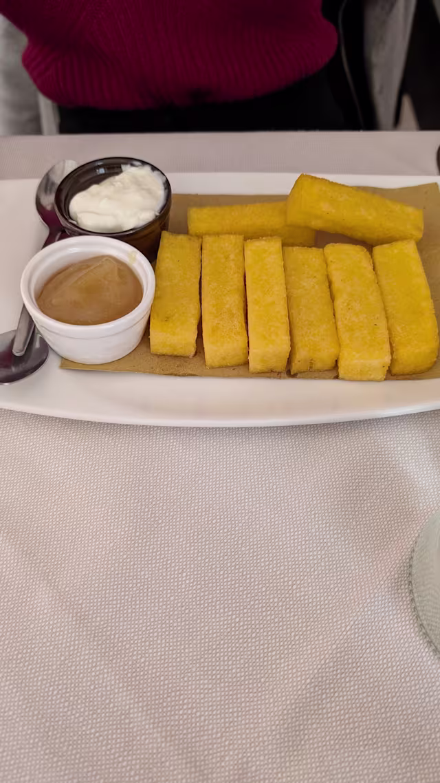 The ribs and the fried polenta were very good. The service was a bit lacking.