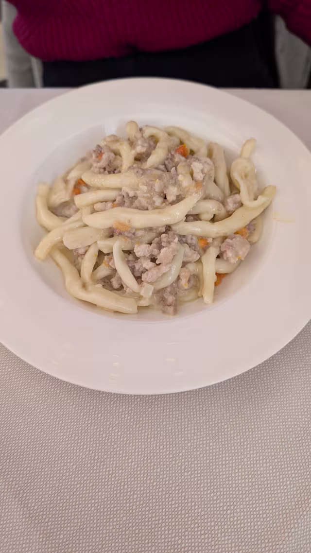 - Strozzapre; con ragù bianco e crema di parmigiano