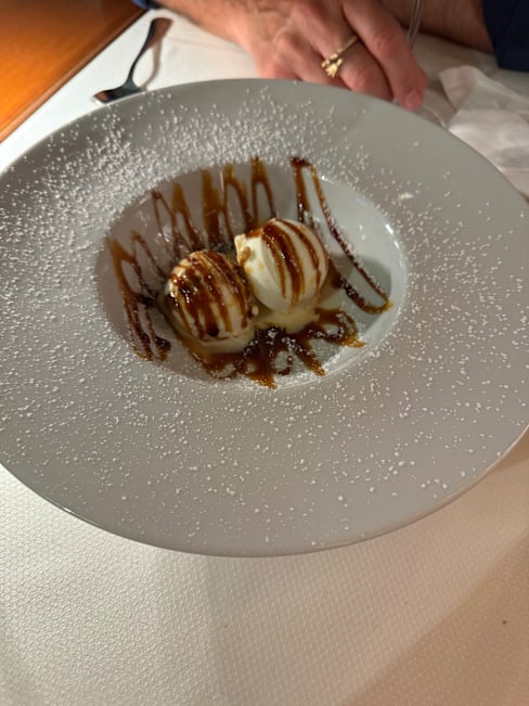 9.5/10Despite we had been late due to rain we had a warm welcome with a small gall of Spumante. The Menü is well selected, not too many dishes. Fresh baby leav salad. Sirloin beef with a intense Marine source was prepared to the point. Wine selection from the region, Italy and France if you want. Was a very positive experience .