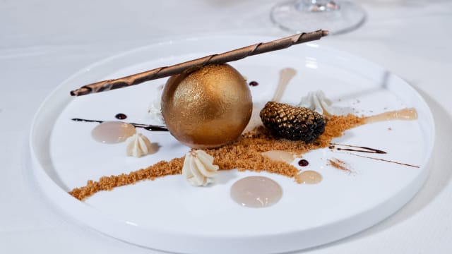 - Uovo croccante su nido di kataifi, erbette selvatiche e quiche di monte veronese