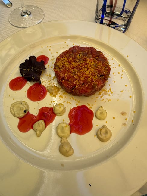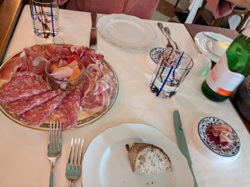 9.5/10Despite we had been late due to rain we had a warm welcome with a small gall of Spumante. The Menü is well selected, not too many dishes. Fresh baby leav salad. Sirloin beef with a intense Marine source was prepared to the point. Wine selection from the region, Italy and France if you want. Was a very positive experience .