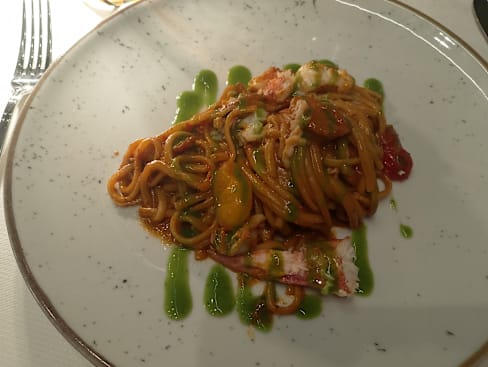 8/10The food was delicious. We had the polpo and agnello and they were both cooked to the perfection, and very tasty. The tiramisu was so good too. Very well presented. The waiters were professional. The portions were a bit small in my opinion for the price, but maybe this restaurant is aiming for a more fancy customer base. Small remark : The 20% off the Fork was not applied correctly, the "Polpo Caramellato" at 24€ should be at 19.20€ after the reduction, instead it was at 20€. The Carre Agnello at 26€ should be at 20.80€, instead it was at 21€. The tiramisu at 8€ should become 6.40€, but they charged 6.50€. Even though it is not very big amounts, but I don't like feeling rigged just because I booked on the fork.