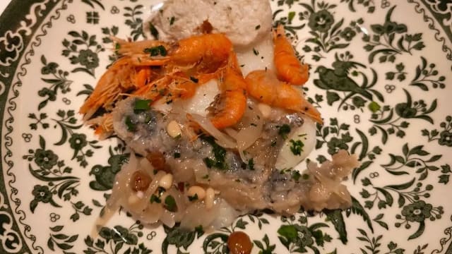 Gamberi, scampi e sarde in saor