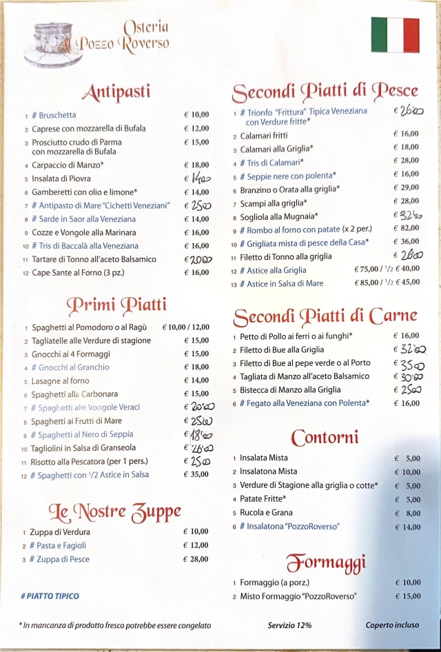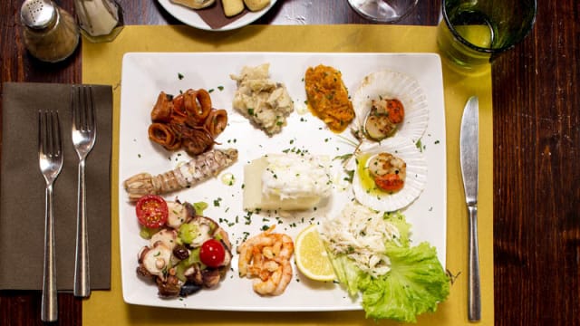 3/10We arrives earlier because it takes a lot of time to find the restaurants in Venice… everybody gets lost. The owner rushed to refuse to respect the discount. After explaining why we were early, health issues, new hip and afraid of falling in the rain, plus that we did not see the issue because only one couple present, he finally accepted. We were sitting in the window and I made signs three different times to couples that it was very good, just to show the owner I was glad he accepted my discount. However when the bill came, he had only two amounts to add, the food and the wine, one at 28 and one at 16,80…. Not hard, well sure enough he made an error to HIS advantage…. We did not see it on the spot, we were talking to his served when he handed us the credit machine. It’s only when we were back at the hotel that we noticed his error… We told him we were celebrating our 50th anniversary. Thanks for your appreciation of me having some people come in, Sir… you made our night.