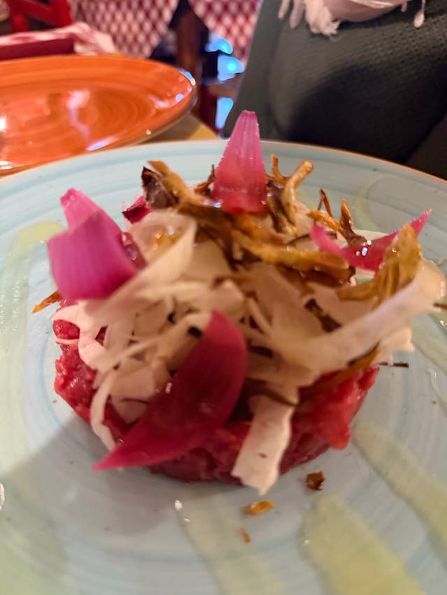 - Battuta di fassone coalvi con crudite’ di carciofi, melograno e scaglie di castelrosso
