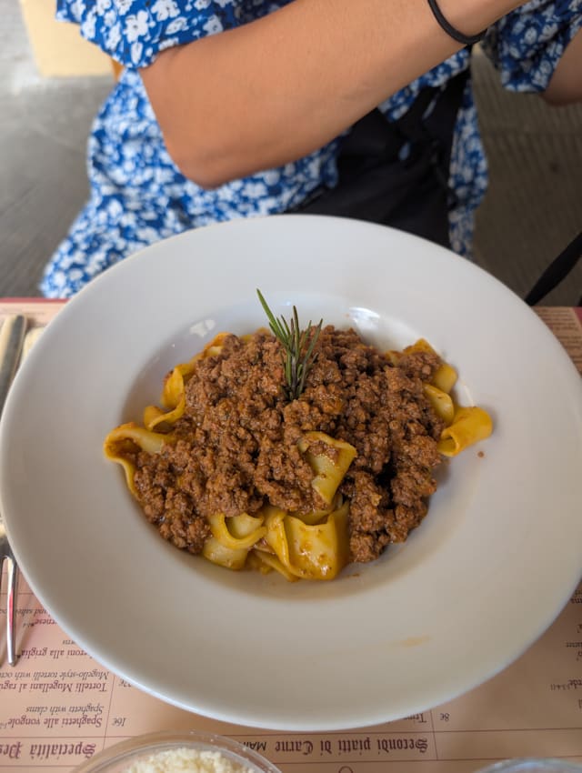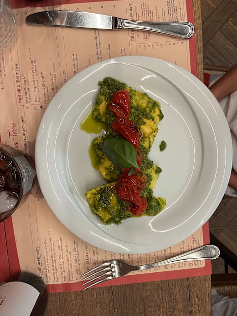 8.5/10Delicious food. My husband and daughter had the paparadelle with the pork ragù. It was fantastic, and my son had the ravioli with pesto which was absolutely delicious.