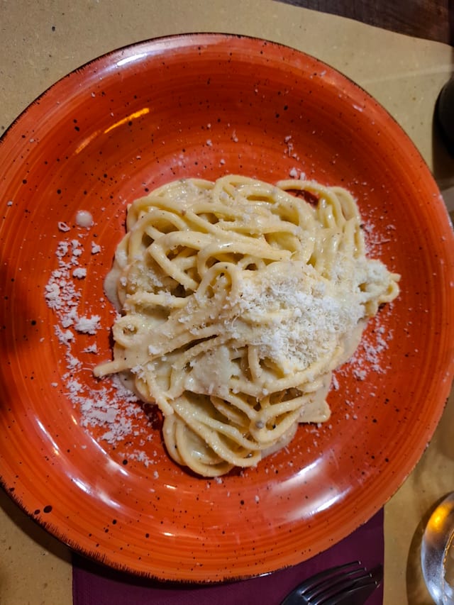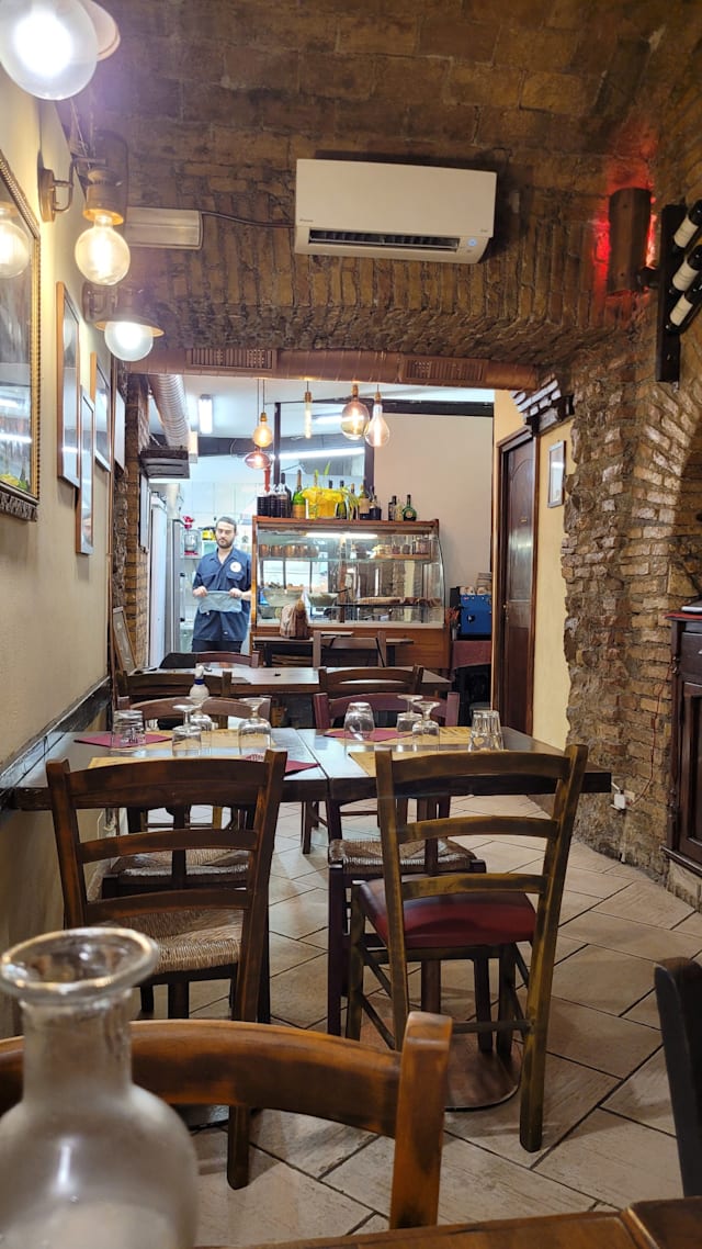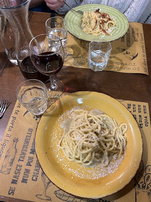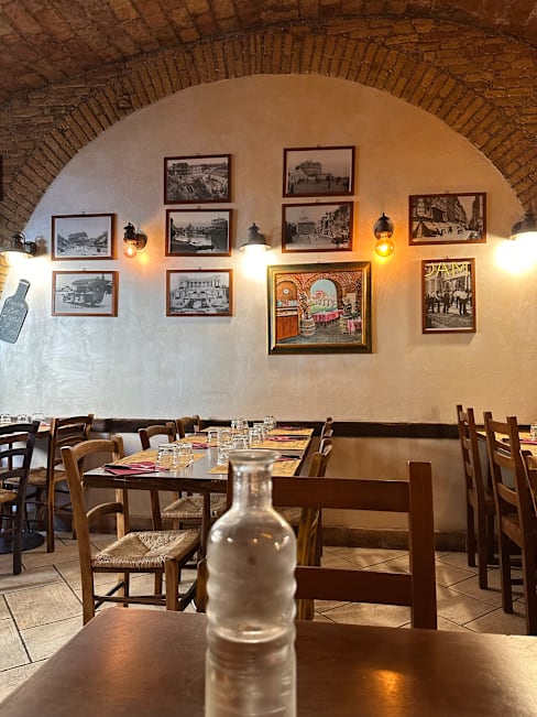 9.5/10Family run restaurant, small but very welcoming. Food according to the best Roman tradition - we had excellent bucatini all'amatriciana washed down with a good Malvasia puntinata, And not expensive at all!