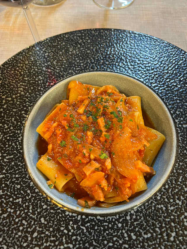 - Paccheri con tonno rosso di sicilia, capperi, olive e pomodorini