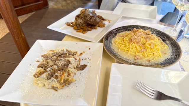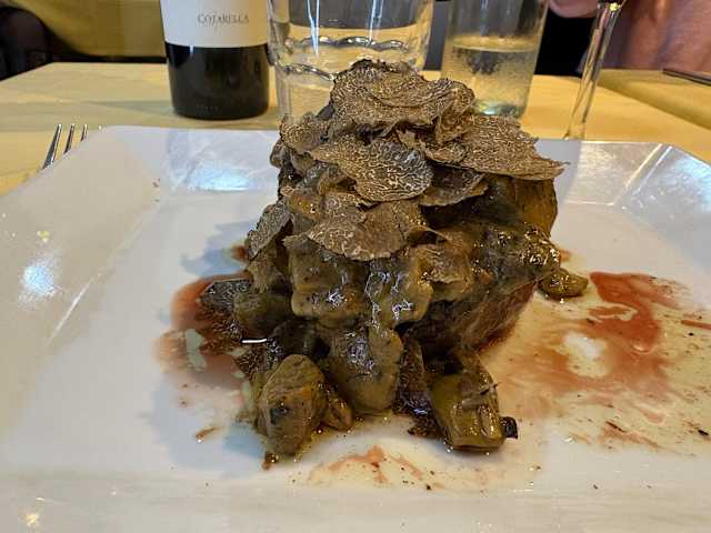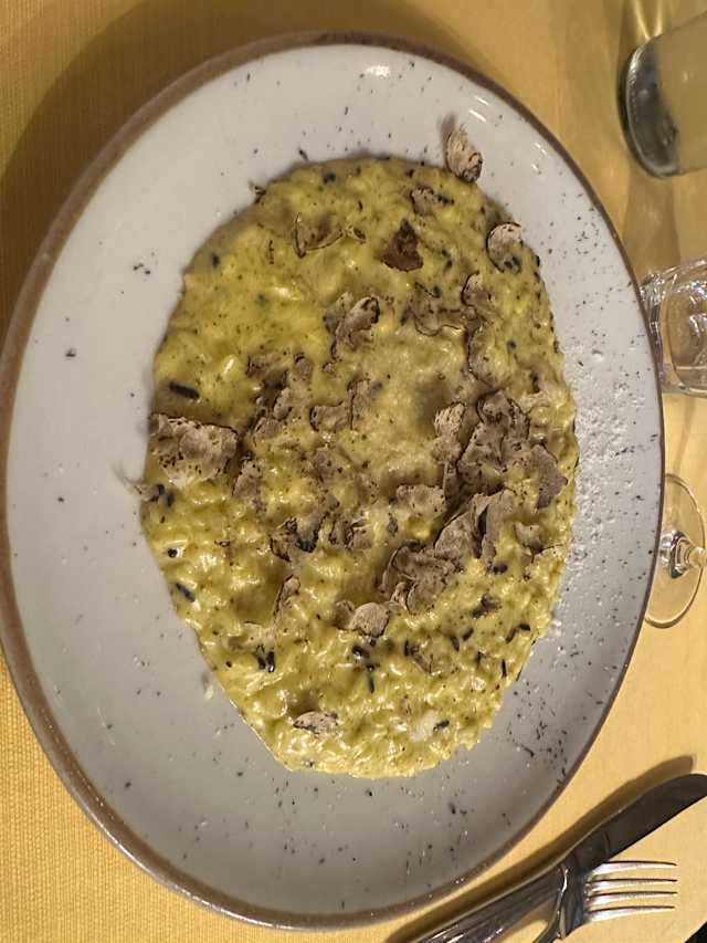2/10A complete tourist trap. It is a famous truffle restaurant, but their truffle had no aroma or taste at all. I honestly didn’t feel like I was eating real truffles. We ordered the sea bass carpaccio, lasagna, and risotto, all with black truffle, but every dish was bland and flavorless. We were seated in the basement with flies buzzing around, and the restroom was wet, smelly, and dirty. Overall, a very disappointing experience. Definitely not recommended.