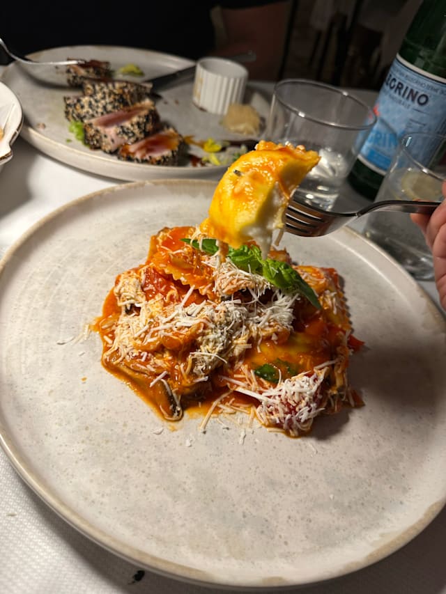 7/10The staff was very nice and helpful, but the food wasn't something special. The fish was very tasty & the grilled vegetables were ok. The beef tagliata was not the best, just because it had a lot of grease and was rare, even tho we asked for a medium to well done, even the second time it came medium rare. I know it's the right way to cook beef but we just didn't like it. For the desert we had Apple cake that was ok, but again nothing special. I think I just expected more from the idea of the Italian cooking 😅 overall nice atmosphere of a small place on an alley & very nice staff.