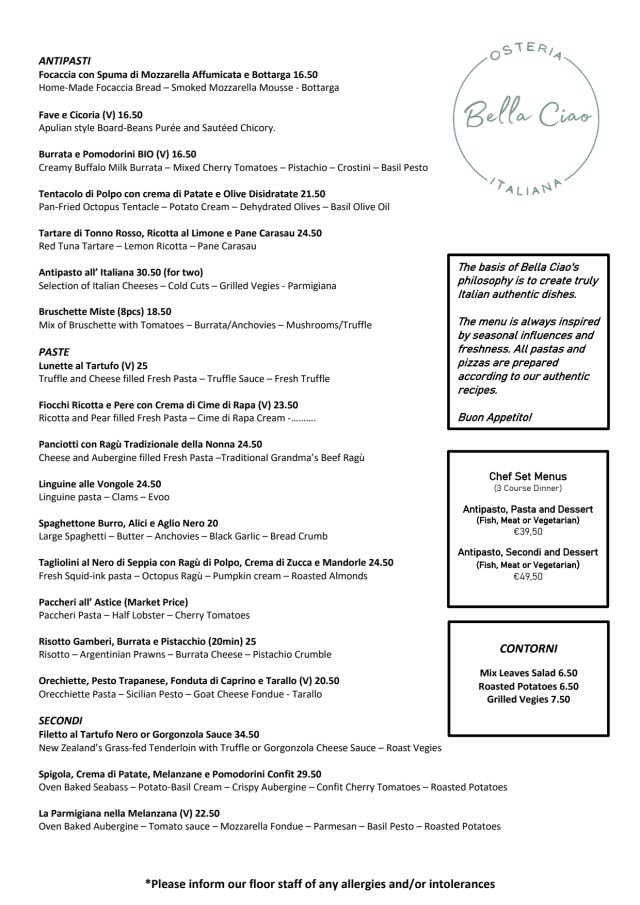 10/10I returned once again to Osteria Bella Ciao I visit from time to time, and once again, it did not disappoint—on the contrary, it exceeded expectations. From the moment you step in, you can feel the devotion to both the atmosphere and the cuisine. There’s a quiet elegance in the way the dining room is cared for, and an unmistakable authenticity in every dish. We started with a delicate tuna tartare, accompanied by a selection of mixed bruschette—each bite full of balanced, fresh flavors. Then came the pasta: perfectly al dente linguine alle vongole and rich, flavorful tagliolini al nero di seppia with tender octopus. Every plate told a story. To close the evening, we shared a tiramisù and panna cotta—both classic, both flawless. A place where you don’t just eat—you feel the food, the care, and the soul behind it. I’ll be back, as always.
