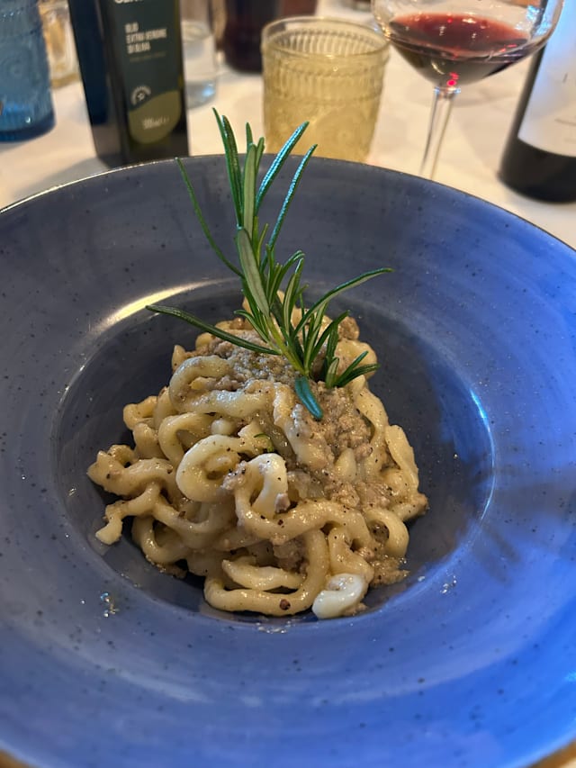 Tagliatelle alla boscaiola con mascarpone e pinoli