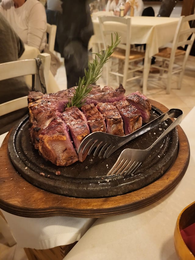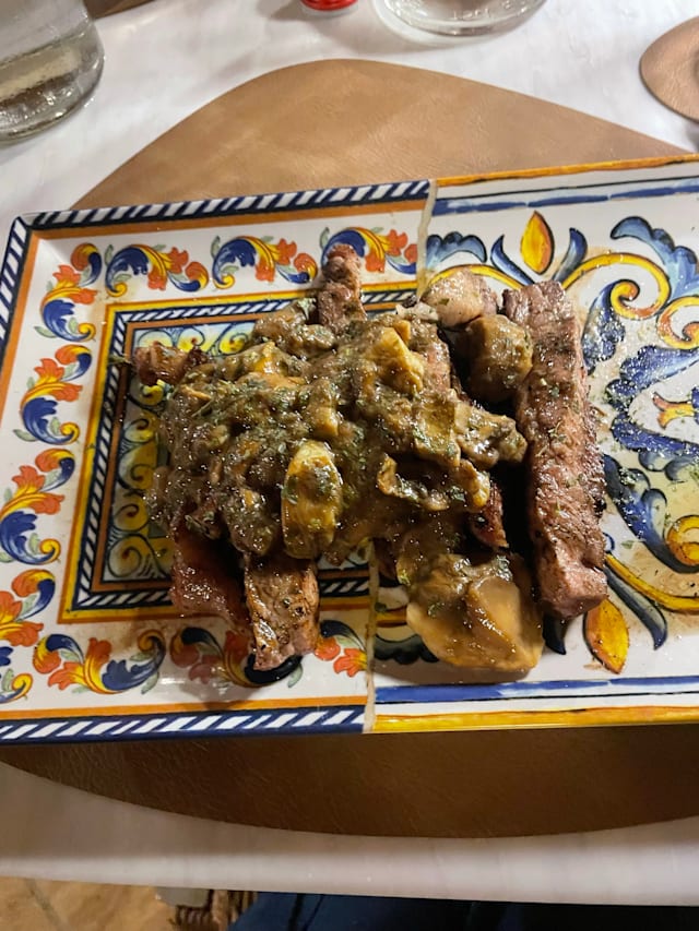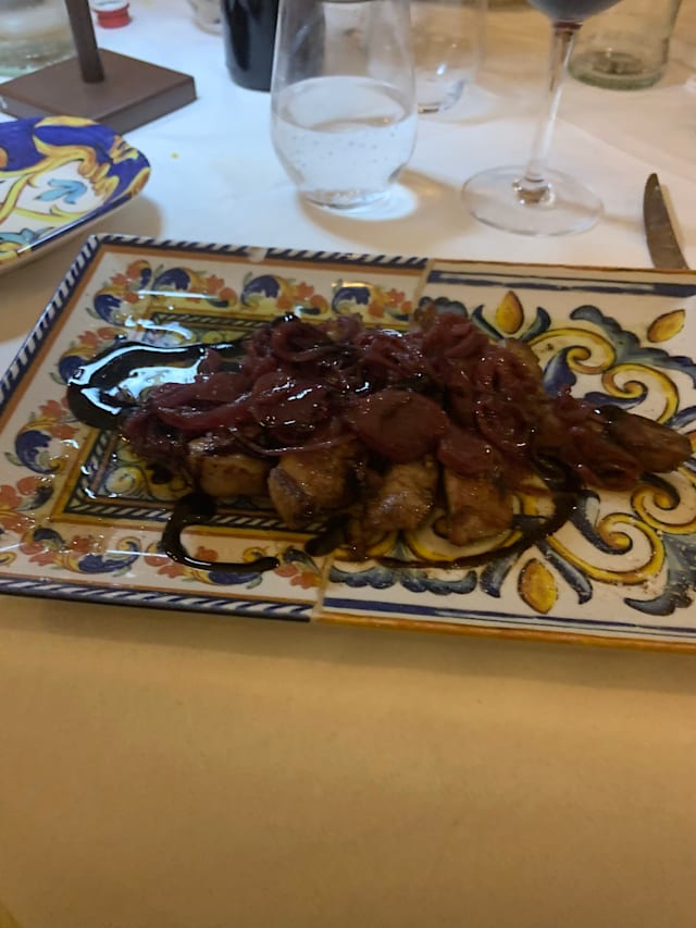 Tagliata di cinta senese con cipolle caramellate e balsamico