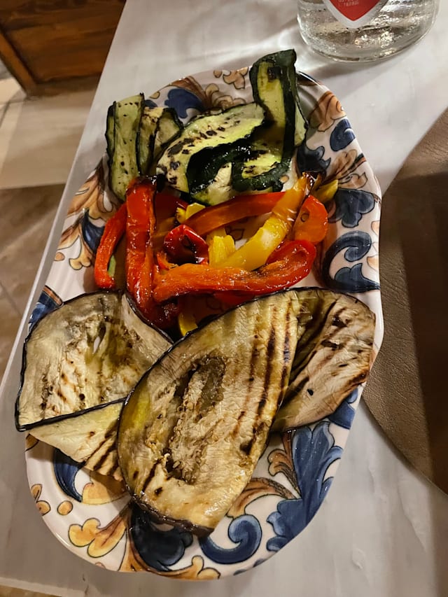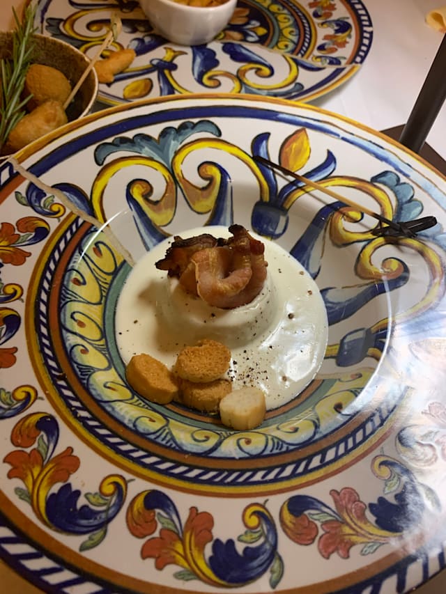 Sformatino di verdure su crema di pecorino e pancetta croccante