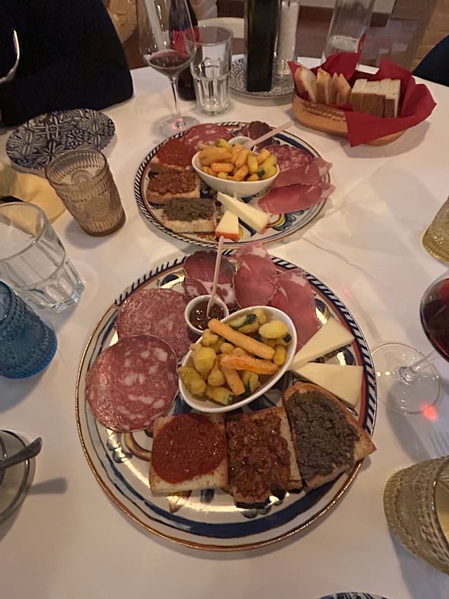 Selezione di salumi del territorio crostini, pecorino delle crete senesi