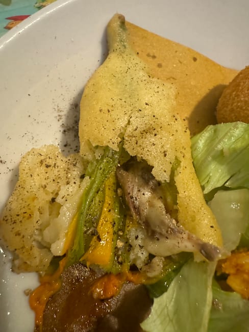2.5/10I tried this restaurant because of its statement that it provides real Italian food. The Fiore di Zucca was extremely oily with very little stuffing. The Suppli was edible. At the time of my arrival,12.30 for lunch I was the only patron. Of the 7 staff members and through to the kitchen I noticed only one person was Italian. It’s not an authentic experience and I would not recommend this restaurant. The lack of customers speaks for itself. I didn’t order any mains. Although I wanted to eat Saltimboca.